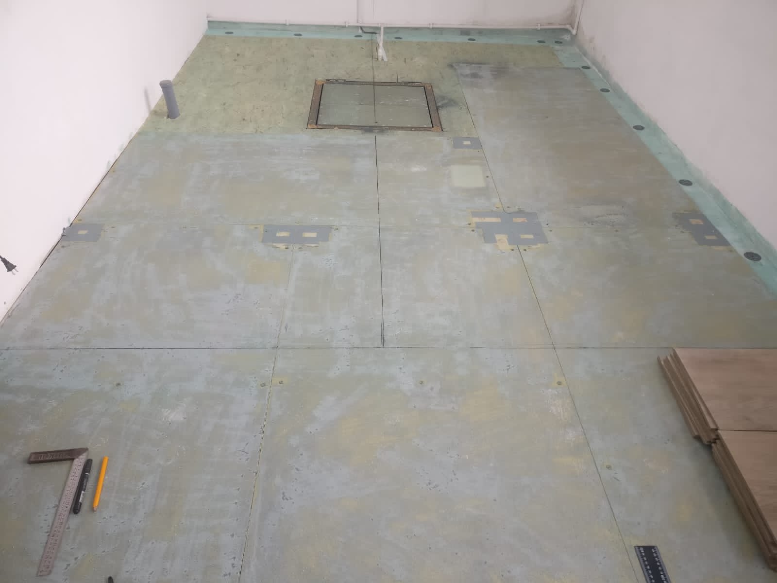 7. Поднимаем(выравниваем) пол в уровень с панелью(панелями) на 15 мм с помощью наливного пола.