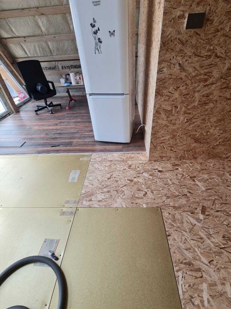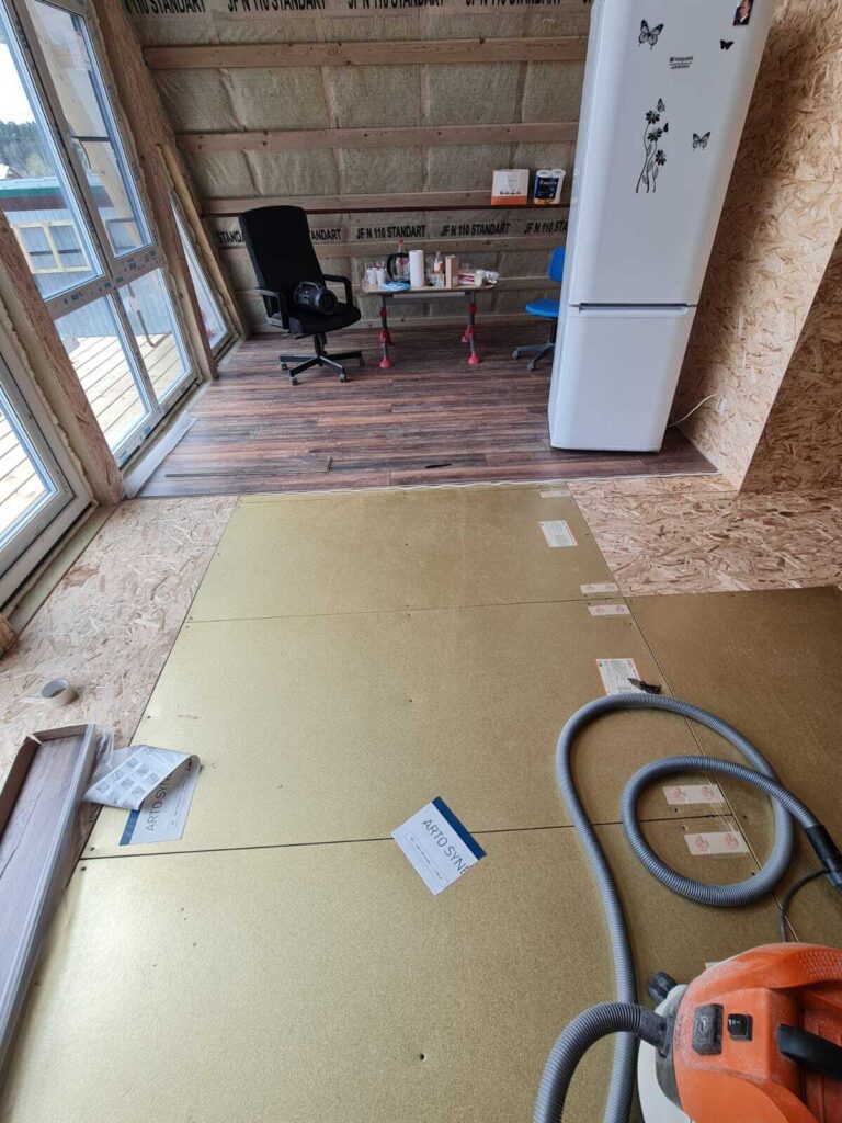 Пример монтажа основного отопления из нагревательных панелей Хотпанел под ламинат в А-фрейм доме расположенном в Сергиевом Посаде, это город в России на северо-востоке от Москвы.