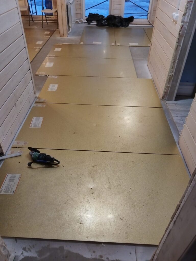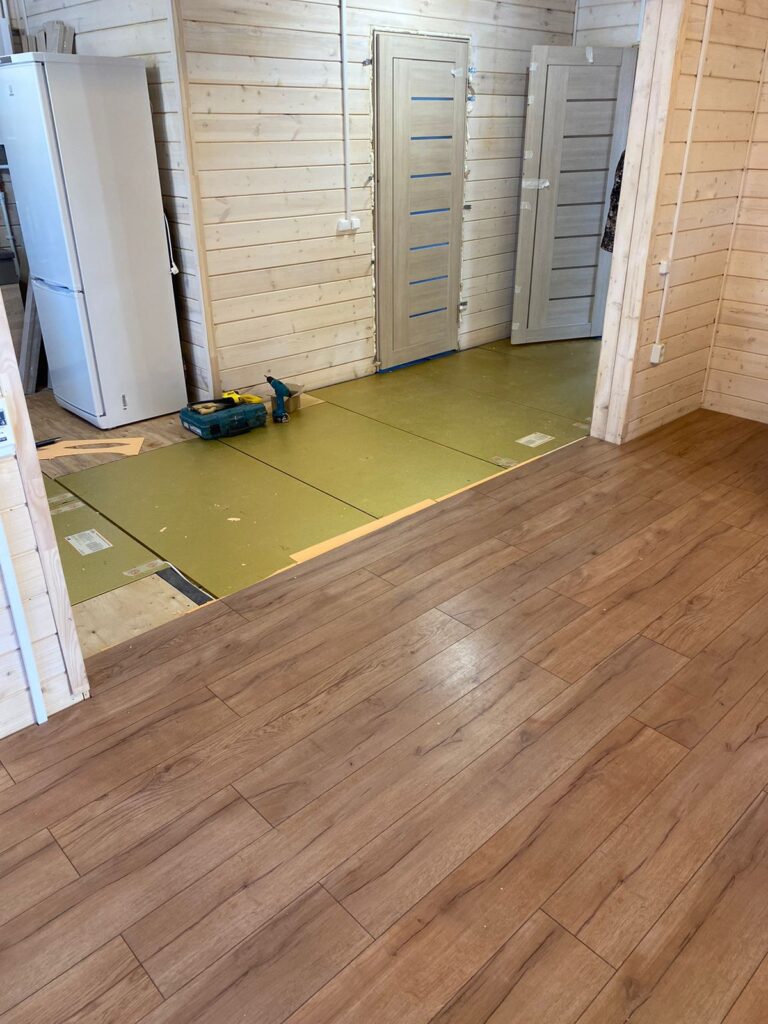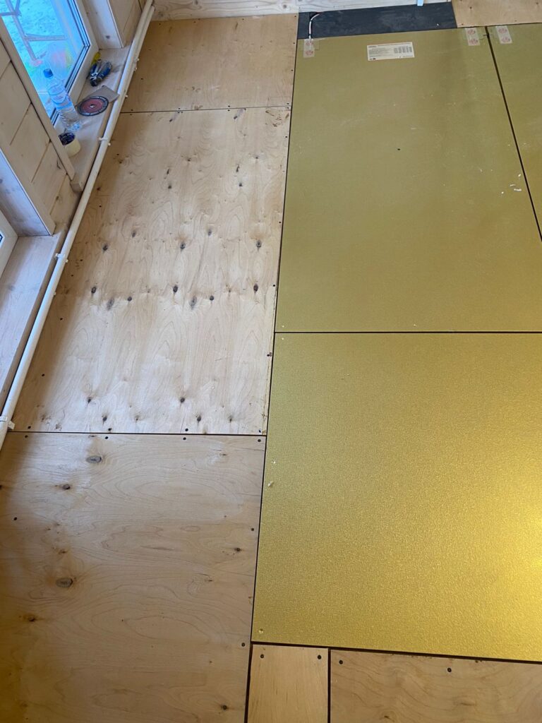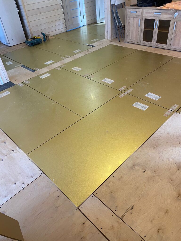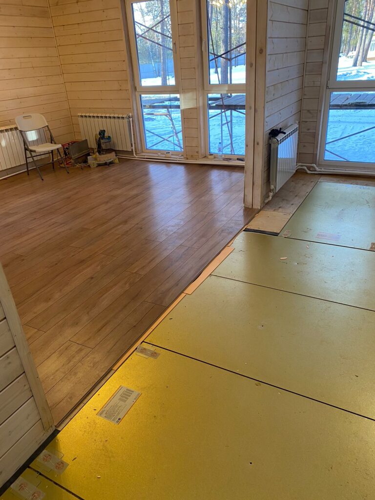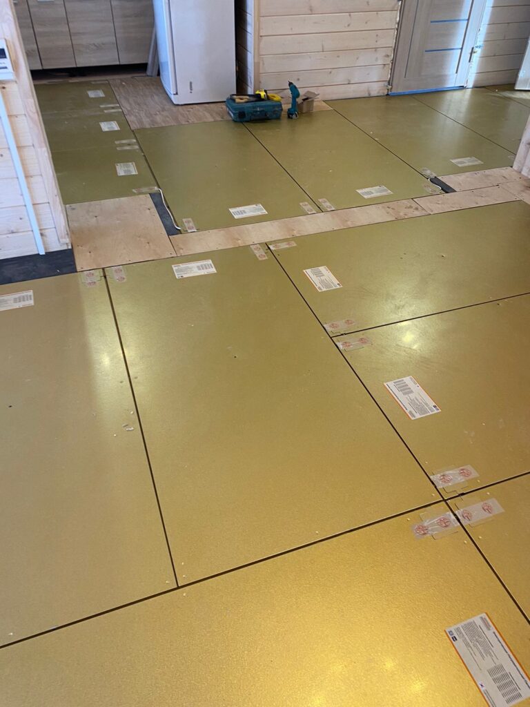 Площадь незанятая панелями выровнена фанерой 15 мм. Финишное покрытие- ламинат.