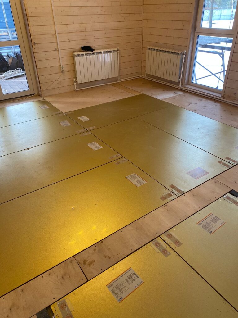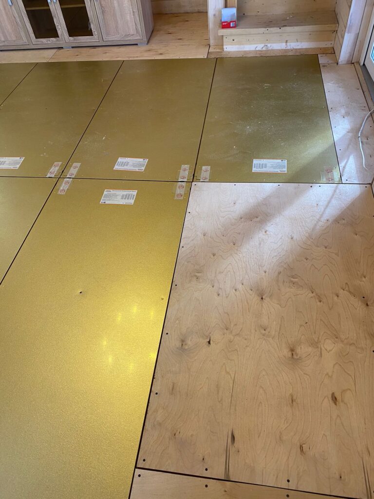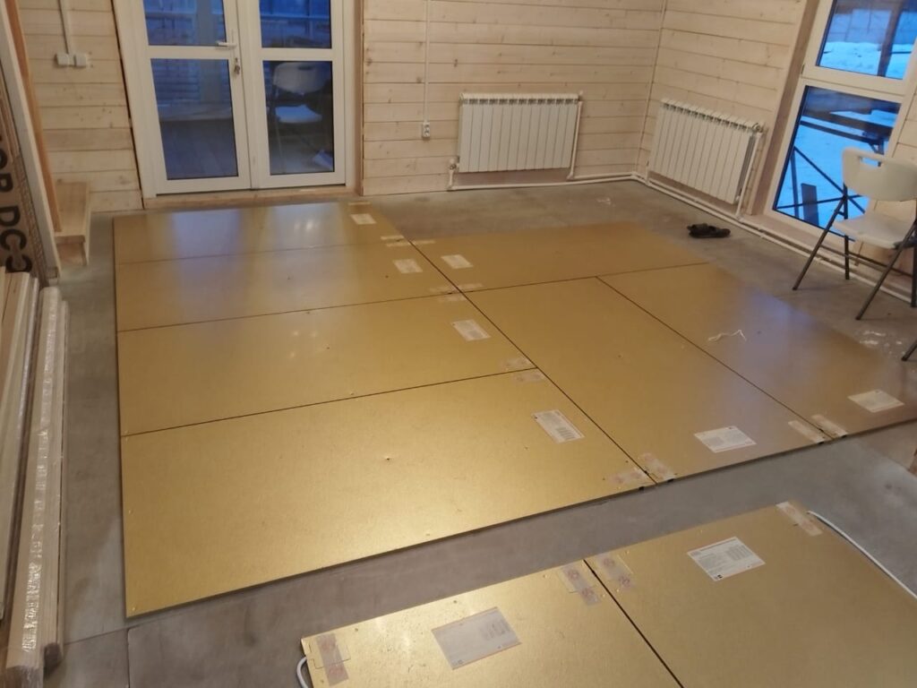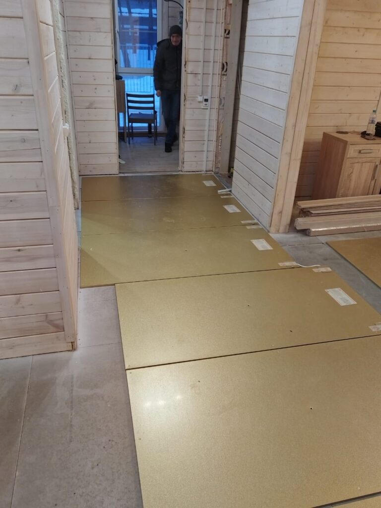Пример монтажа основного отопления из нагревательных панелей Хотпанел под ламинат в каркасном коттедже расположенном в Тульской области на базе отдыха Шахтер