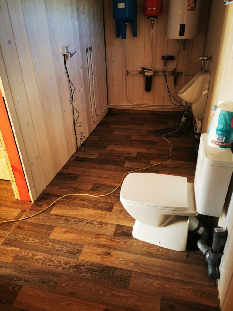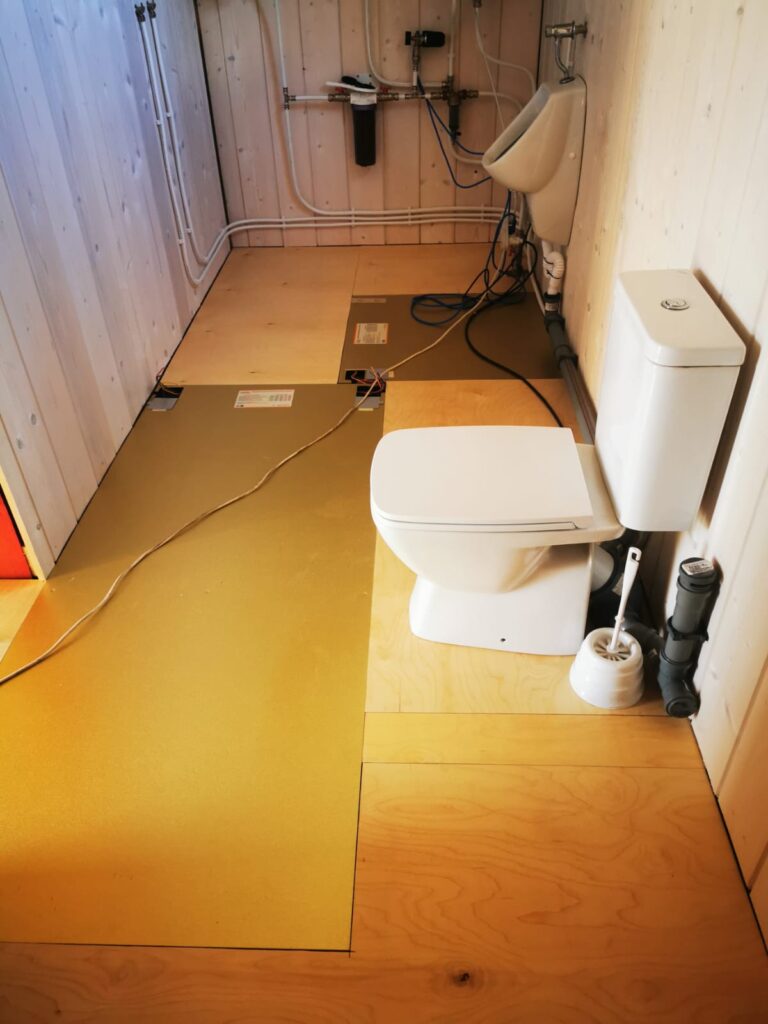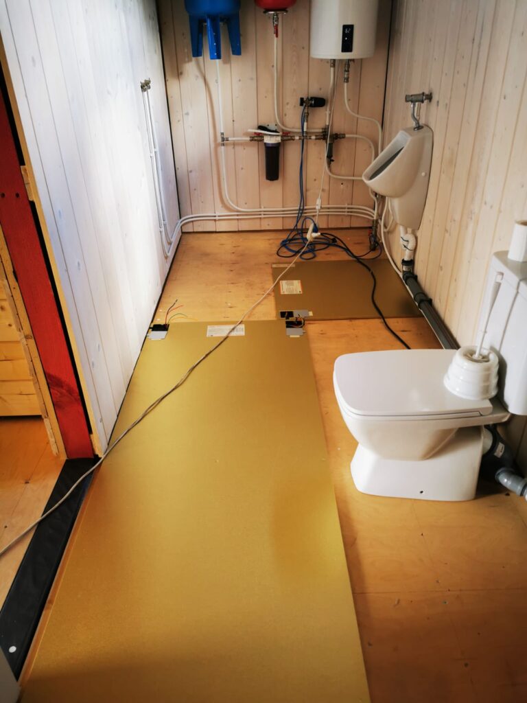 Пример монтажа электрических нагревательных панелей Хотпанел в санузле дома из бруса.