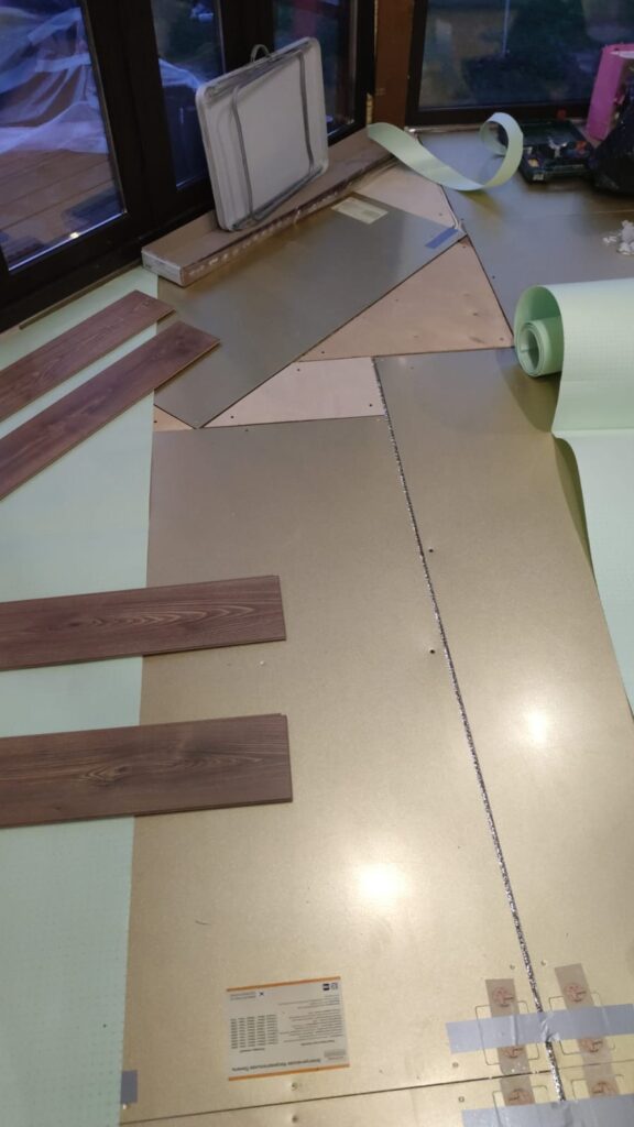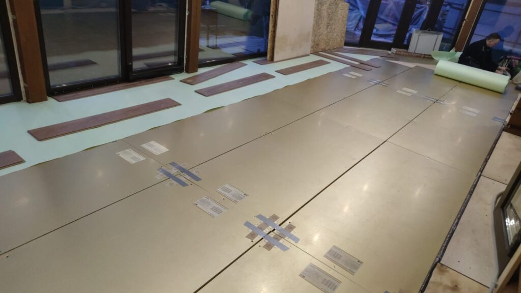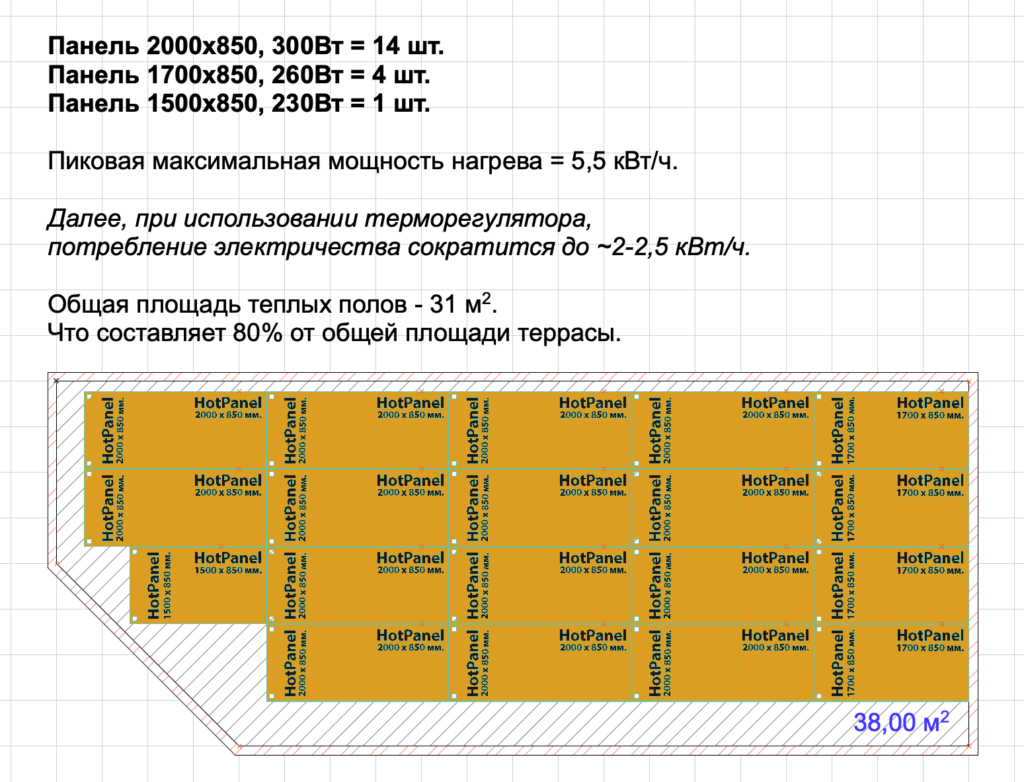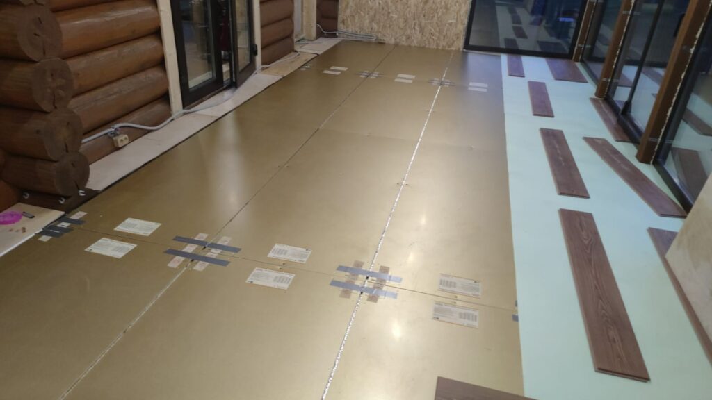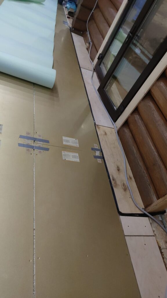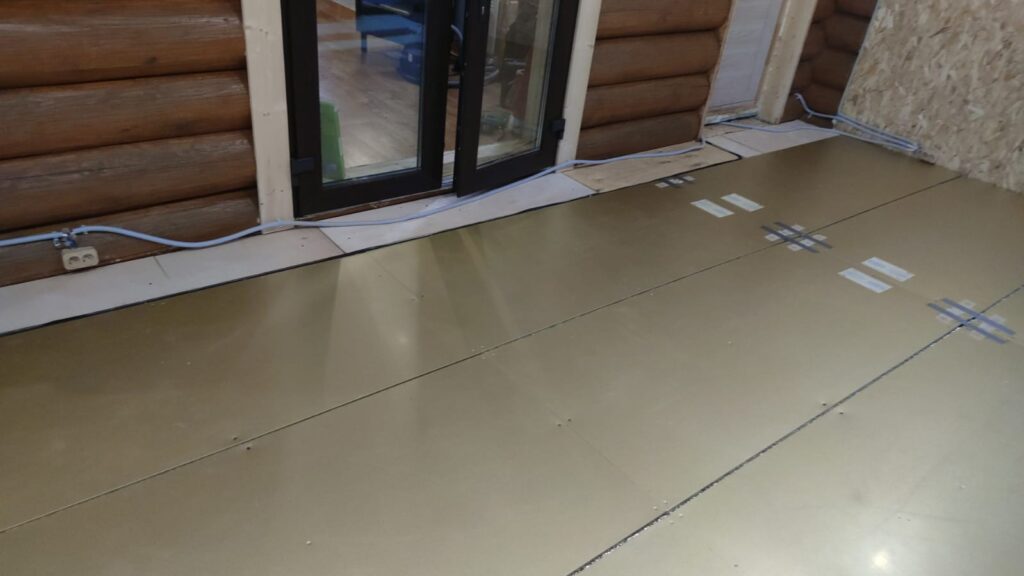 Пример укладки электрических панелей Хотпанел в пристройке веранде деревянного брусового дома. В качестве финишного напольного покрытия планируется линолеум. Дом находится: Заокский р-н, Тульская обл.