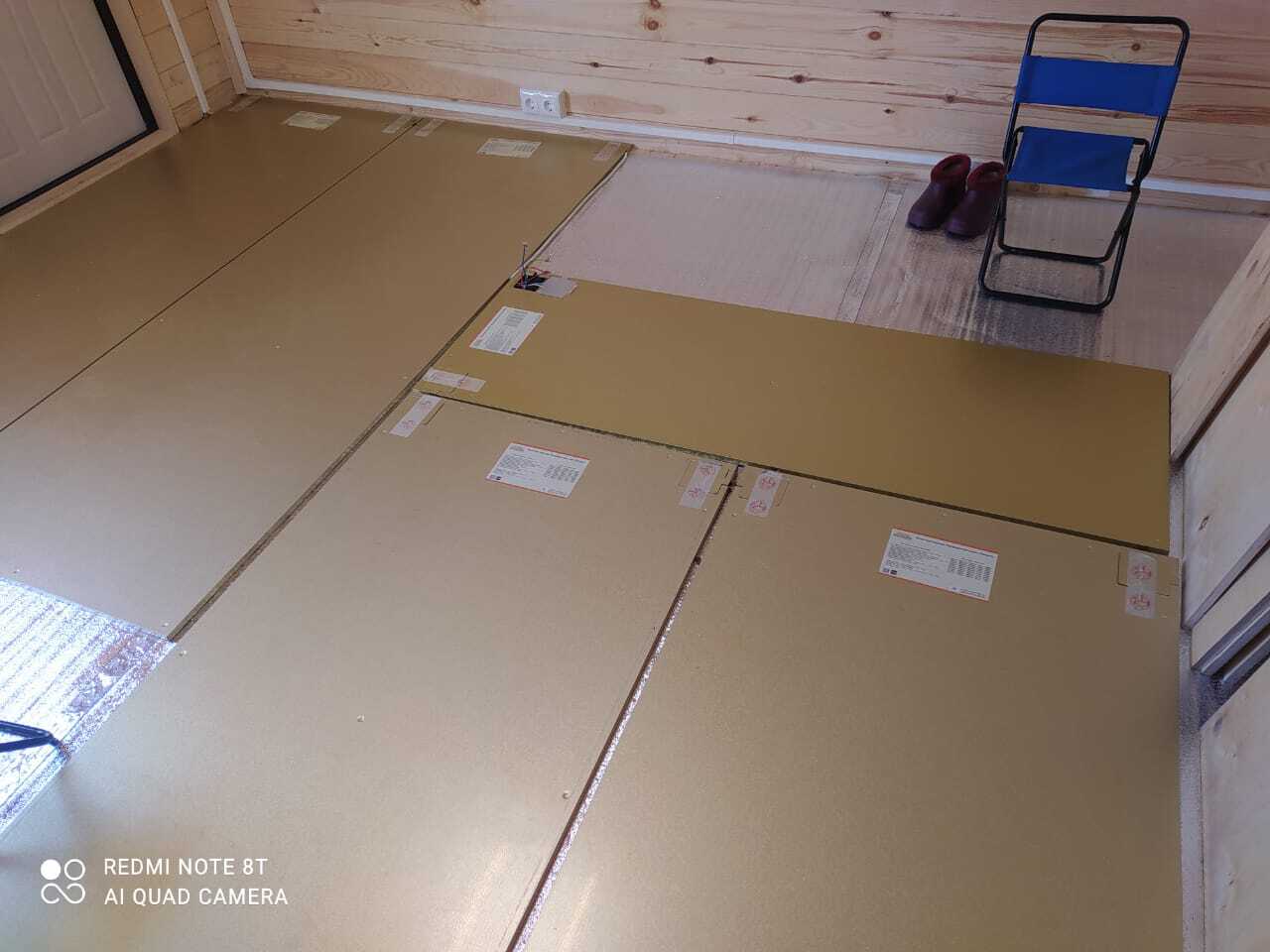 - Ламинат, паркетная доска, линолеум, ковролин (укладка непосредственно на панели через подложку).